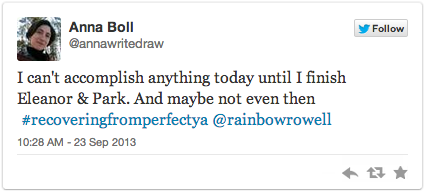 I just finished Rowell’s, Eleanor & Park which led me to post this on Twitter.
