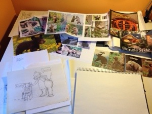 I’m so excited to be at my drawing table again. My most recent revision of my YA manuscript is safely with my agent, and I’m working on a new dummy for a picture book that she’s interested in. Here’s some of the wonderful mess of the process.