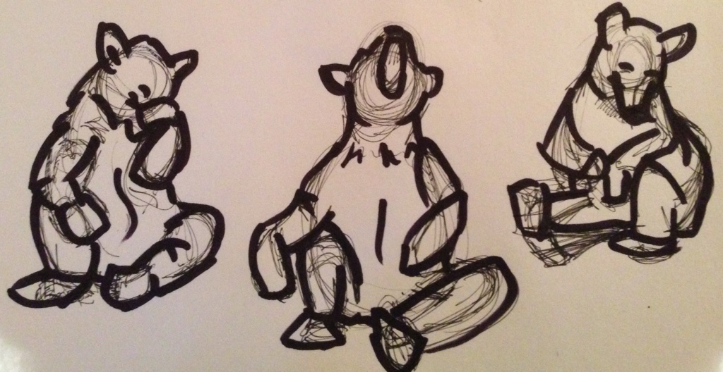 More bear sketching today. This new work is bringing me such joy. I don’t know if it is just the change of project, or that it’s drawing, or that it is bringing me back to my first love, picture books, or if it is that I’m steeped in bears (they are SO DARN CUTE) but the work makes me light of spirit. Also, I spend much less time online when I’m at my drawing desk and away from the computer. Amen!
