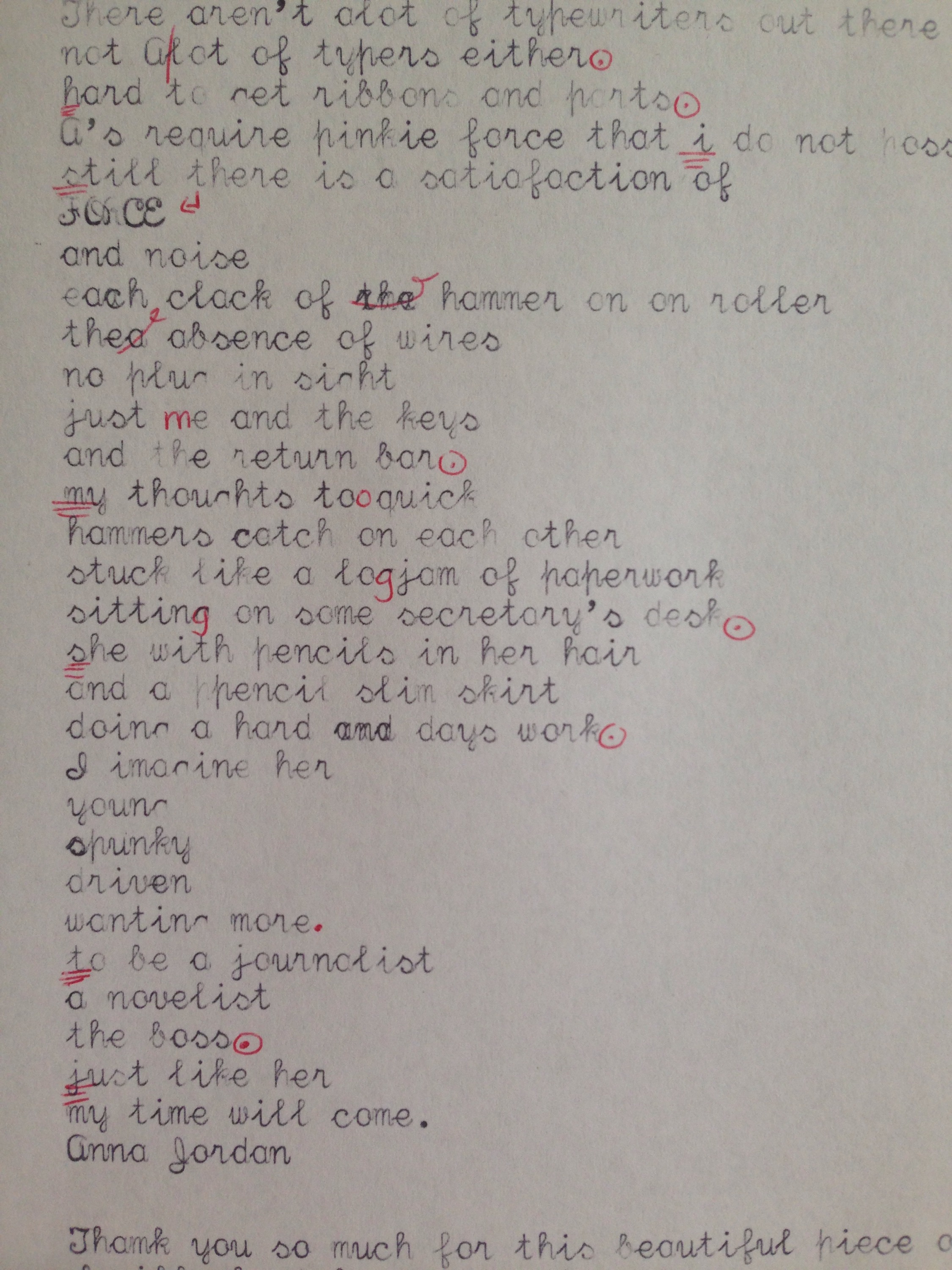 I recently became the caregiver to a 1953(?) Smith-Corona typewriter which inspired the following poem. Enjoy! (Now if I could only find a new ribbon.)